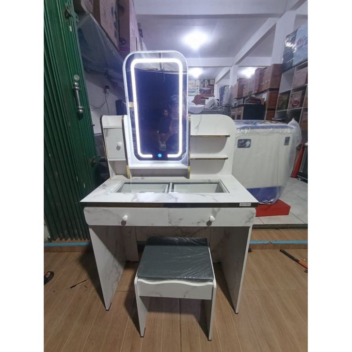 Terlaris Meja Rias Cermin Petak Oval Lampu LED 3 Warna TouchScreen MR Krisan MR Peony Elegan