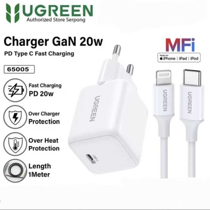 Charger iPhone UGREEN Original Fast Charging Adaptor USB Type C to Lightning Mfi 20W Garansi 1 Tahun