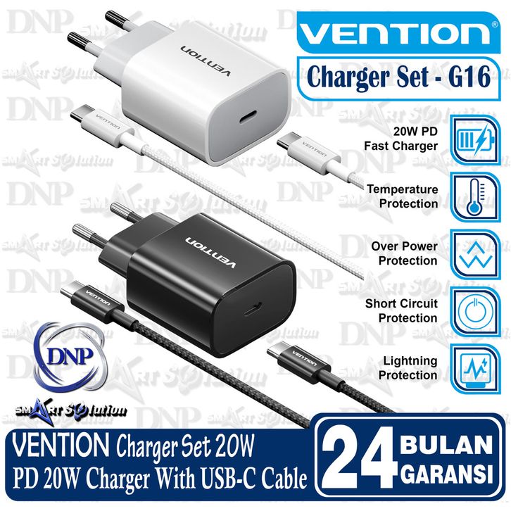 Vention G16 Kepala Charger 20W PD EU Bundling Kabel USB Type C to C 3A 60W 1M Braided Cable