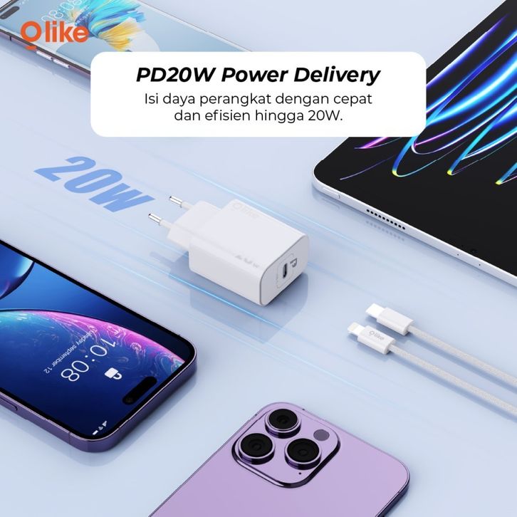 Charger Olike Iphone 12 13 Charger Lightning PD 20W Charger Type C to Lightning Olike C308CL