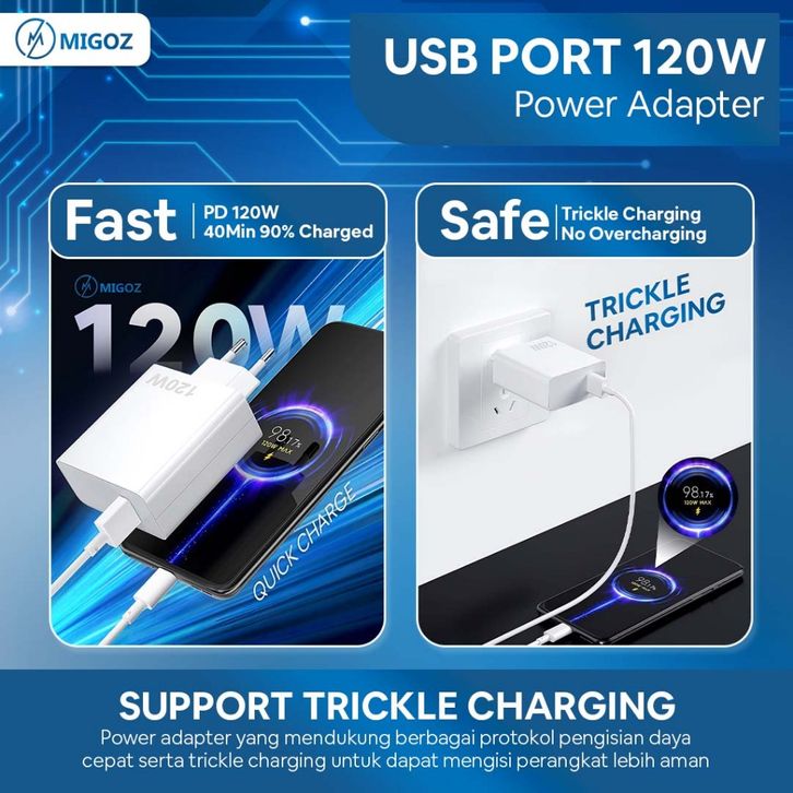Migoz Charger 120W Fast Charging Micro USB & Type C untuk Semua HP Android & Smartphone