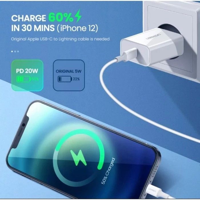 UGREEN Charger iPhone MFi PD Type C to Lightning Fast Charging 20W 50698 50799