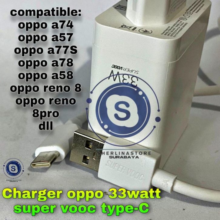 Charger Casan Cas OFFO Original Type C 33W Super Vooc OFFO Reno 6 7 8 A57 A96 A77s A74 A76 A95 K10 F21 K3 A5 2020 A9 20