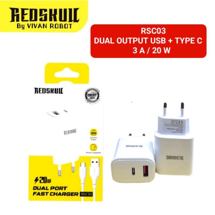 CHARGER HP REDSKULL RSC03 DUAL OUTPUT USB PLUS TYPE C3A/20W WITH KABEL