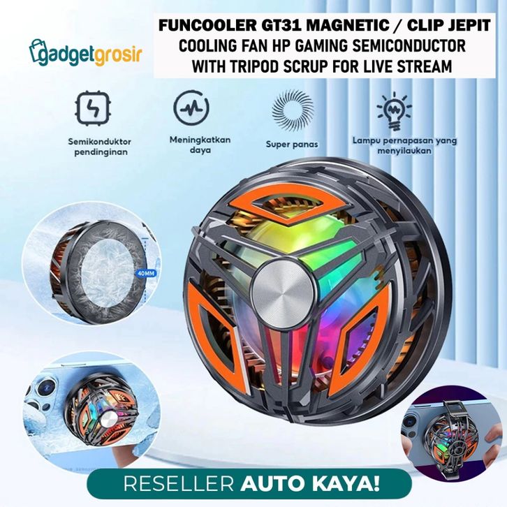 Funcooler GT31 Cooling Fan Semiconductor RGB Magnetic / Clip Jepit Kipas Pendingin HP Gaming Live Streaming Phone Fan C