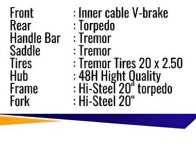SEPEDA ANAK USIA 6-10 TAHUN BMX 20 Tremor torpedo Murah berkualitas
