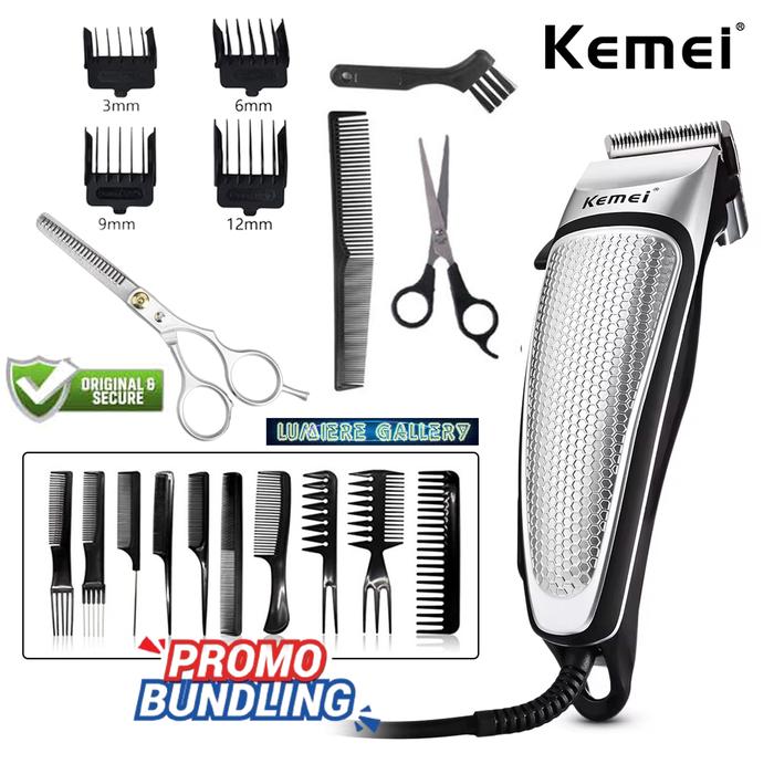 PAKET LENGKAP Mesin Cukur Rambut Listrik KEMEI KM4639 BONUS Gunting Sasak Set Alat Cukur Hair