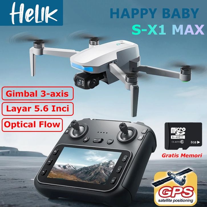 Drone S-X1 dengan Gimbal 3-Axis Drone GPS Brushless Motor 4K HD WIFI Layar 5.6 Inci Besar Ada Optical Flow