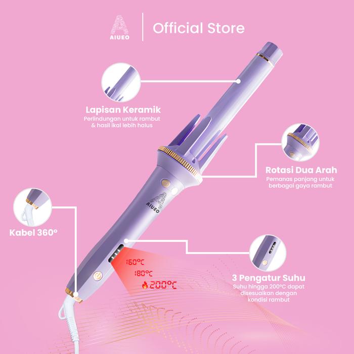 Catokan AIUEO Rose Catok Keriting Rambut Otomatis Plat Keramik AIUEO 168 Roll Panjang - Warna Ungu