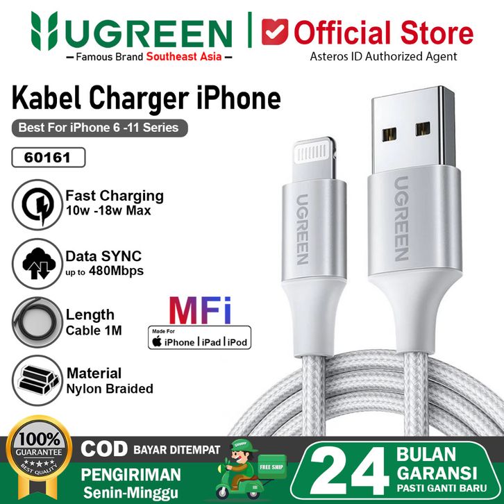 UGREEN Kabel Data MFI iPhone 5 6 7 8 X Xr Xs USB lightning Fast Charging 10w 18w