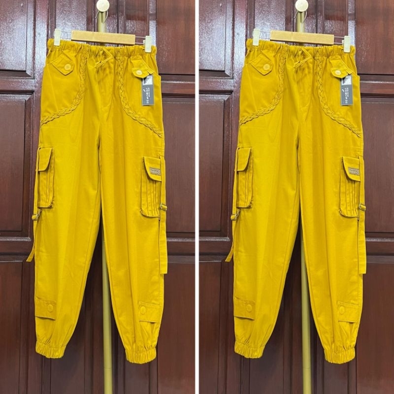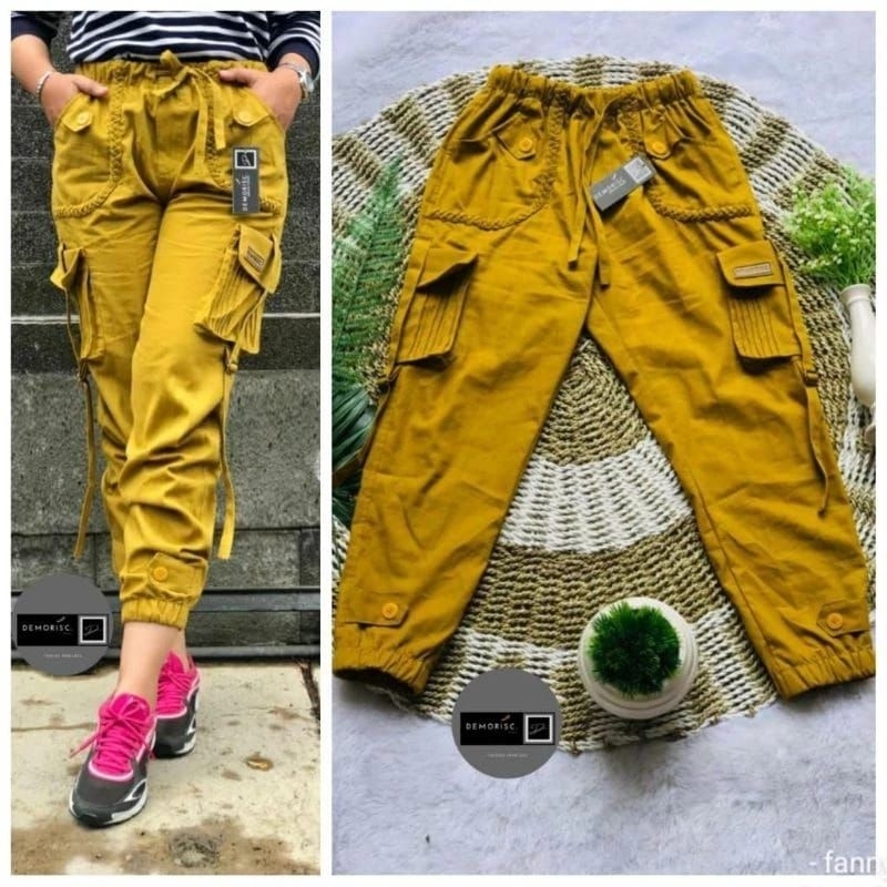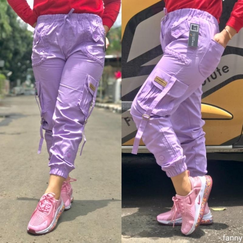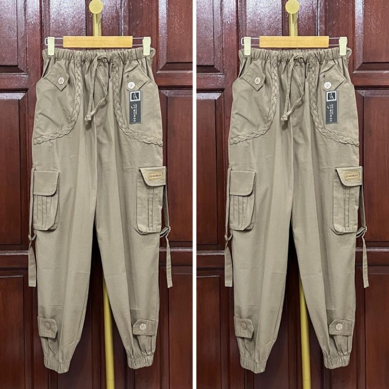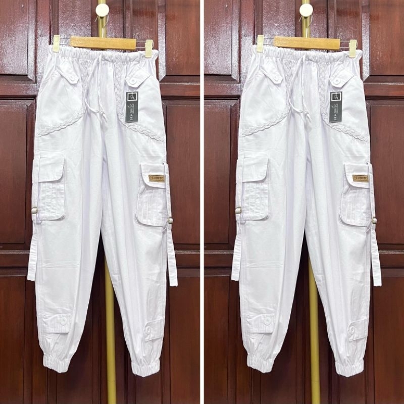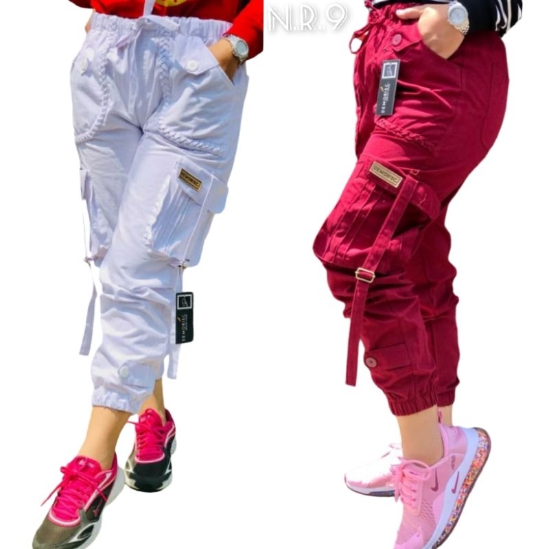 CELANA KARGO JOGGER WANITA MODEL KEPANG DEMORISC MERAH PUTIH