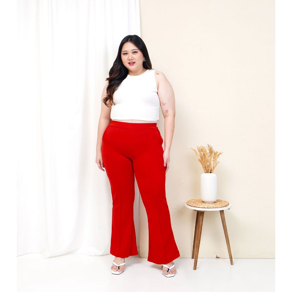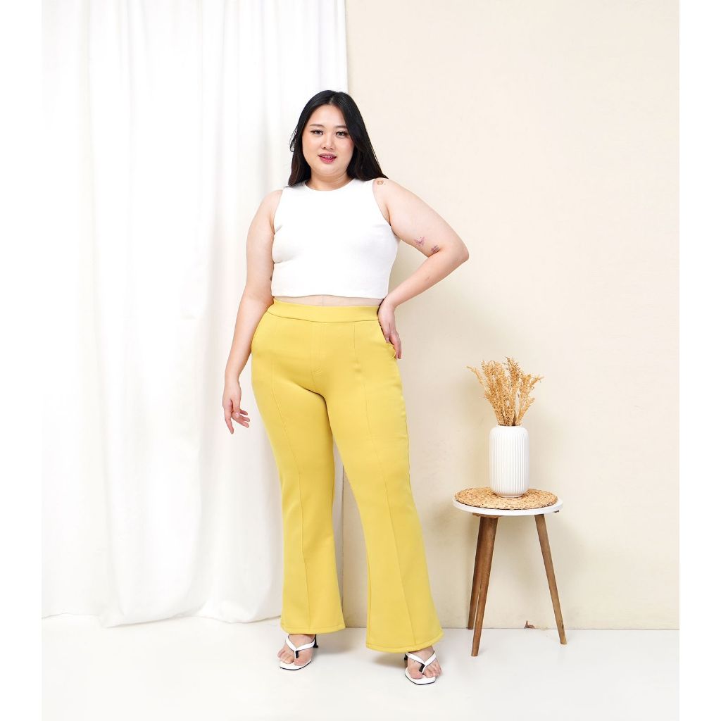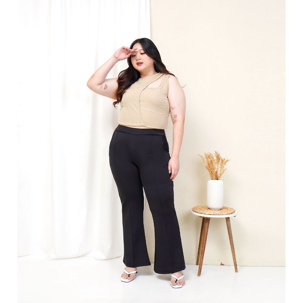 HYGET Celana Cutbray List Wanita Jumbo Highwaist Scuba Premium