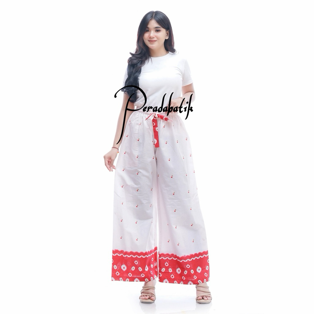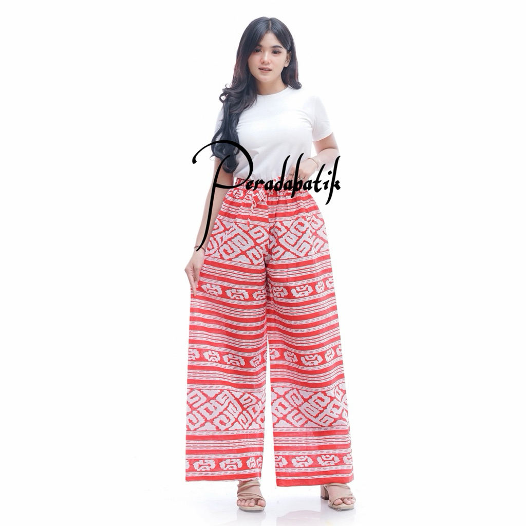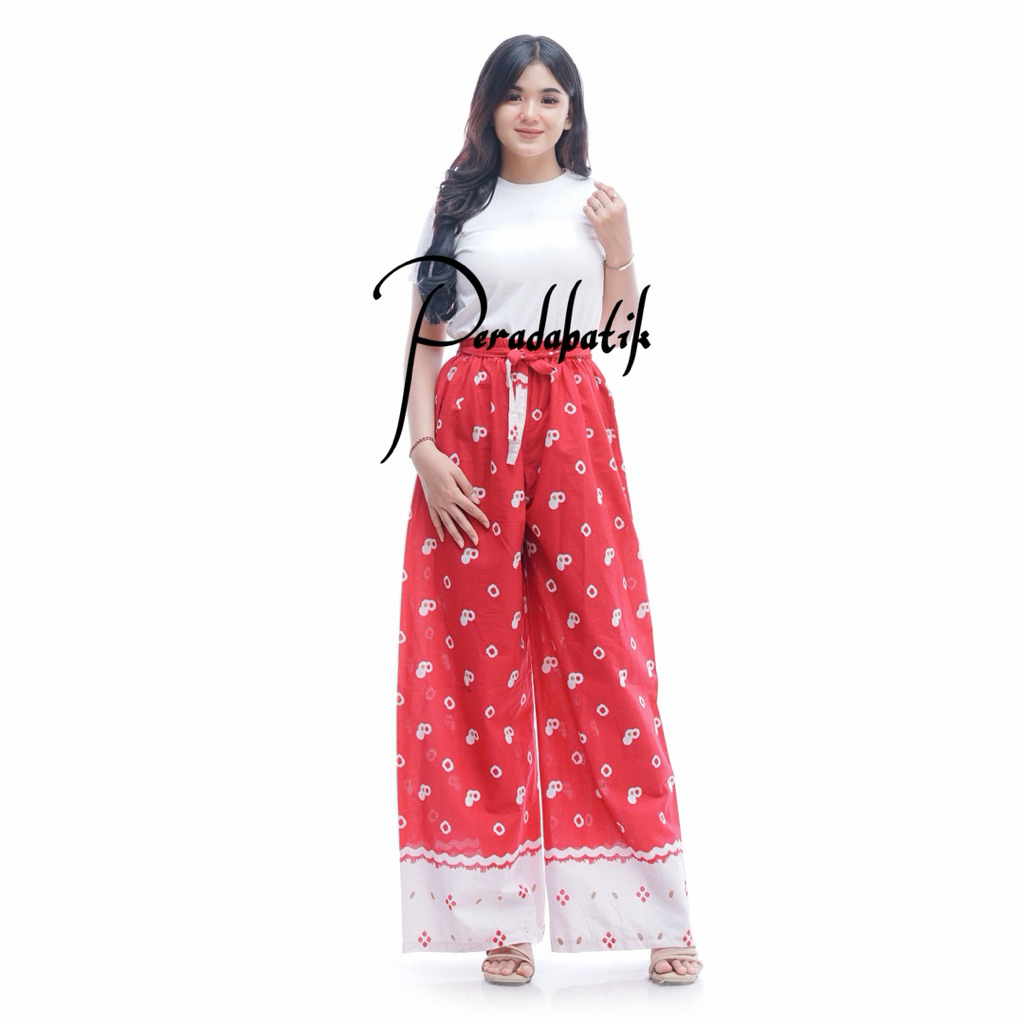 CELANA KULOT BATIK WANITA DEWASA KULOT PALAZZO MERAH PUTIH MOTIF TERBARU