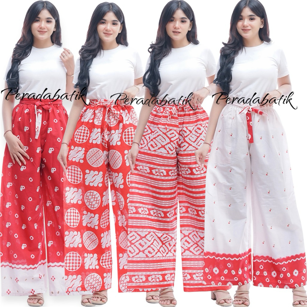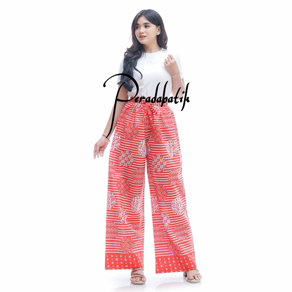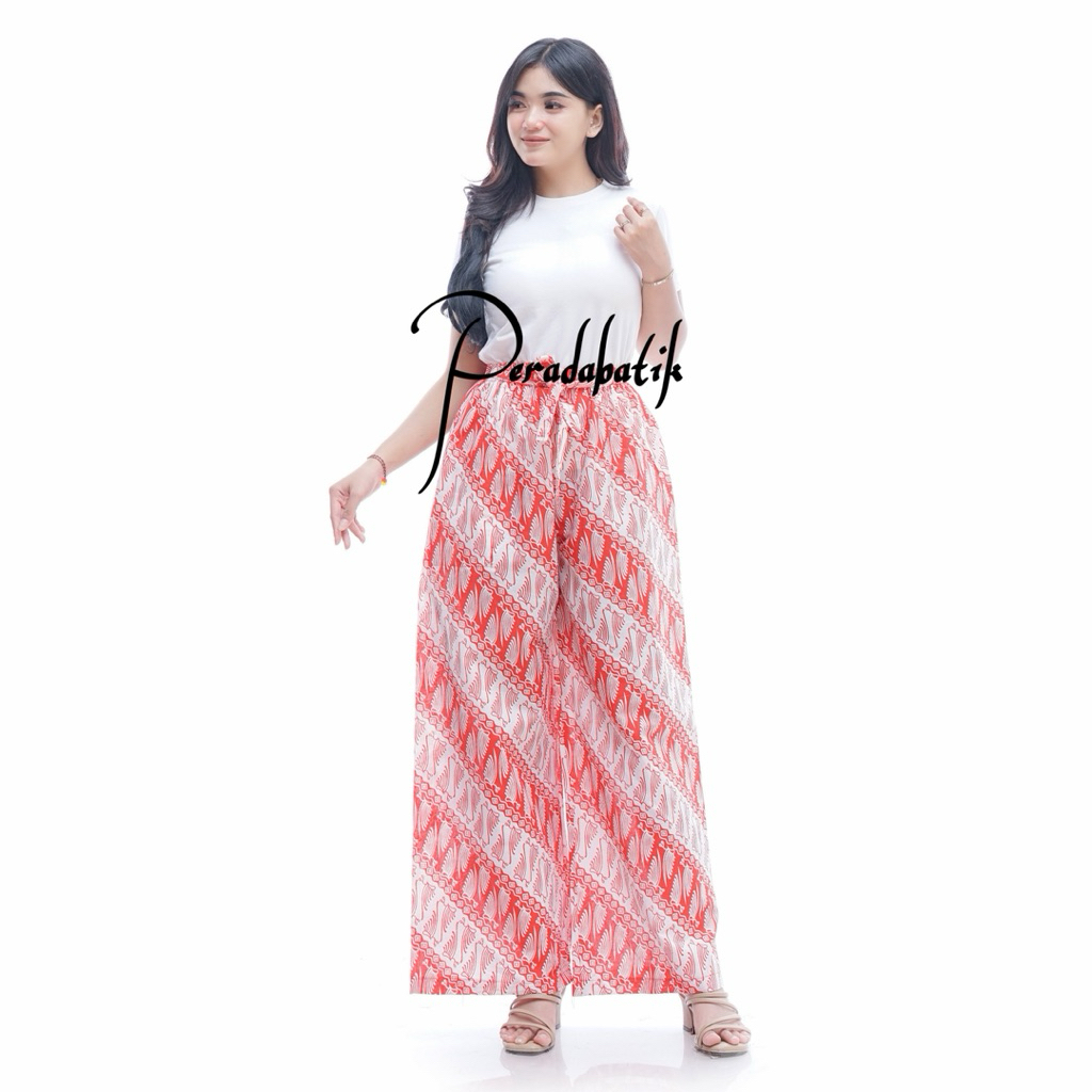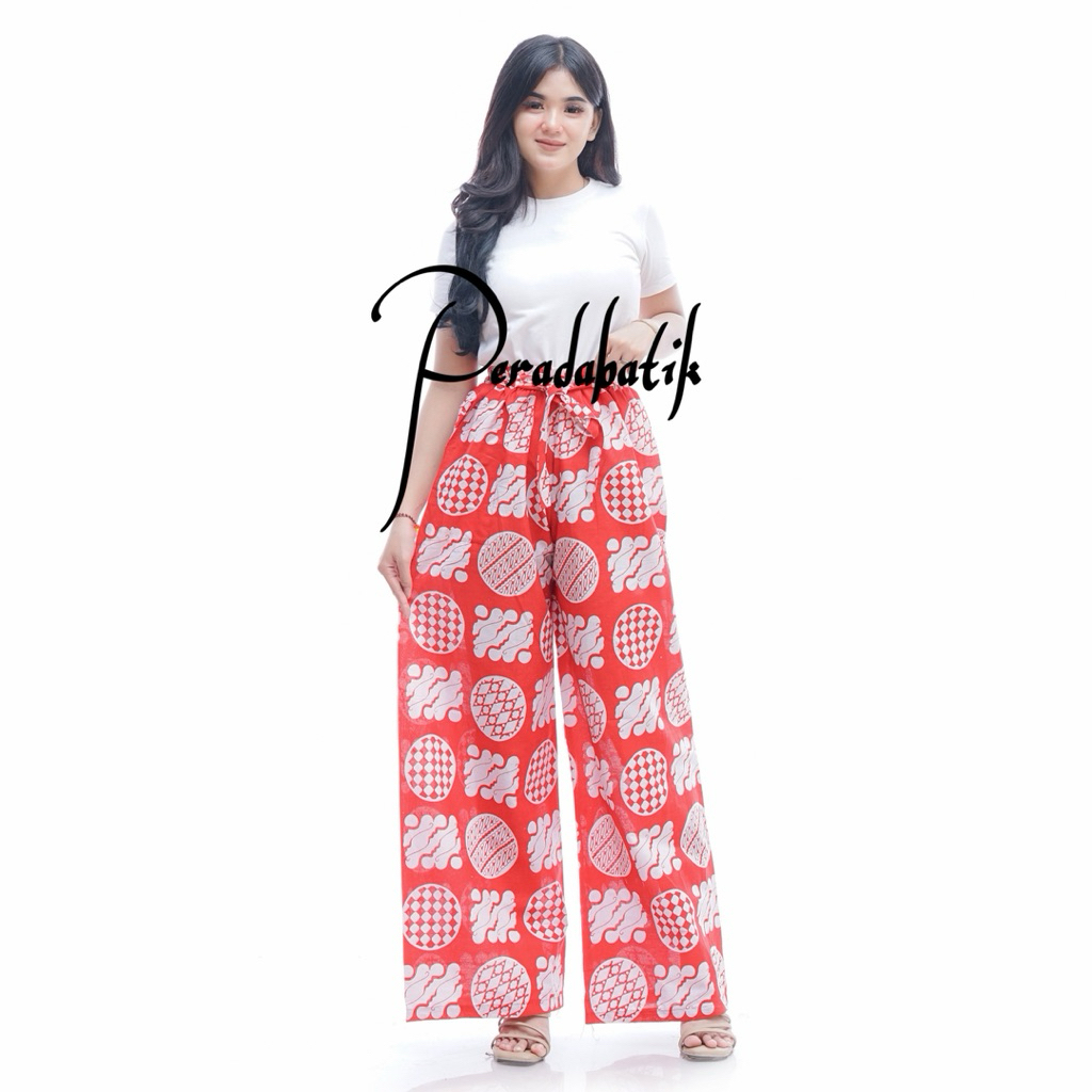 CELANA KULOT BATIK WANITA DEWASA KULOT PALAZZO MERAH PUTIH MOTIF TERBARU