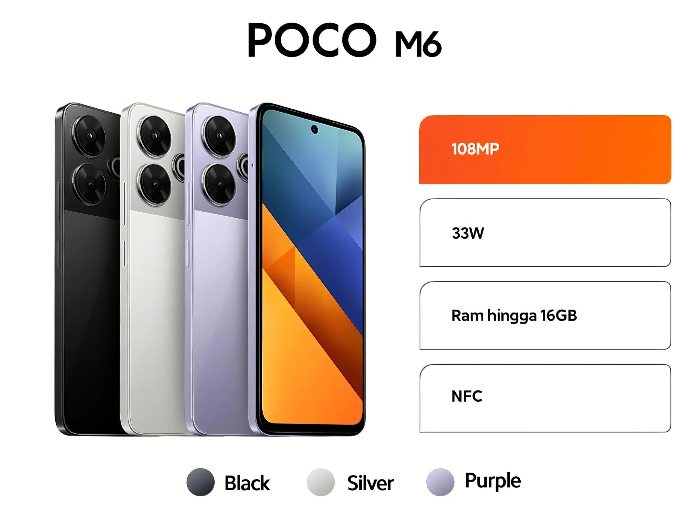 [Star] HP POCO M6/C75 8GB/256GB 6GB/256GB Kamera utama 108 MP Helio G91-Ultra Murah RAM Besar Tanpa DP Tebaru 2025