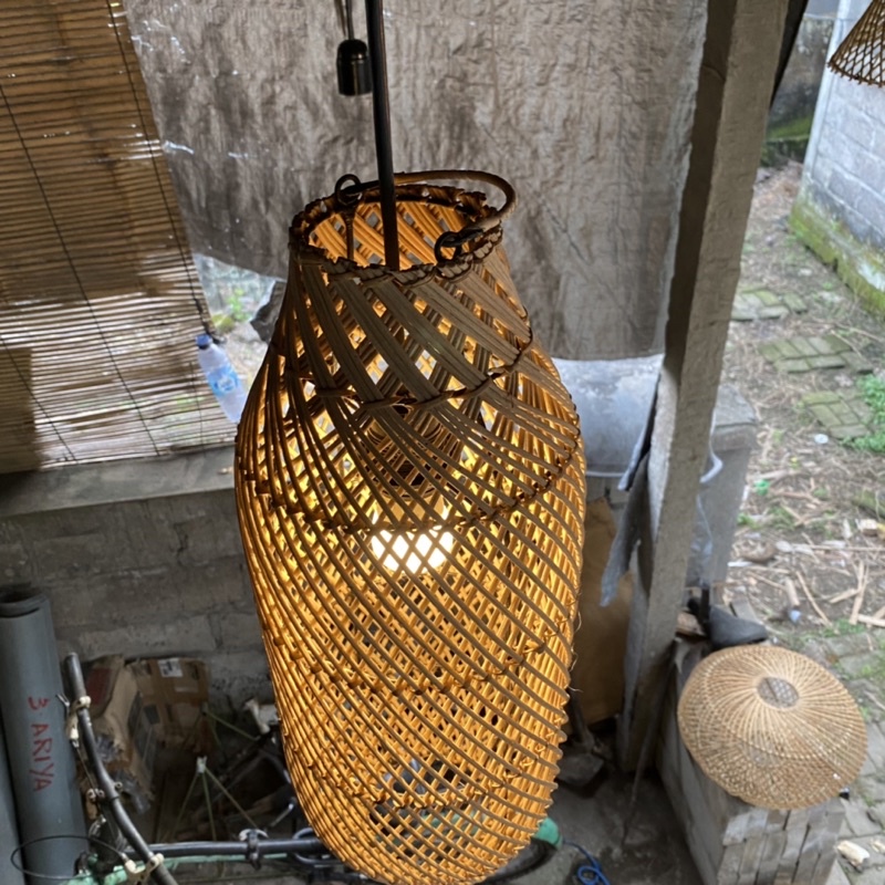 KAP LAMPU ROTAN MOTIF TABUNG 45 CM - KAP LAMPU RATAN - KAP LAMPU TABUNG - LAMPU CAFE - KAP LAMPU BAMBU - KAP LAMPU UNIK - LAMPU KAYU - LAMPU VILLA