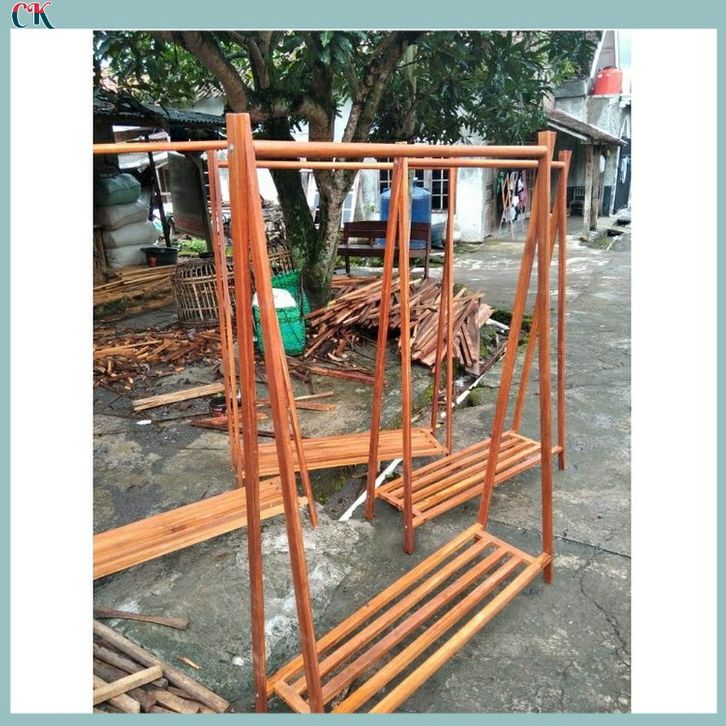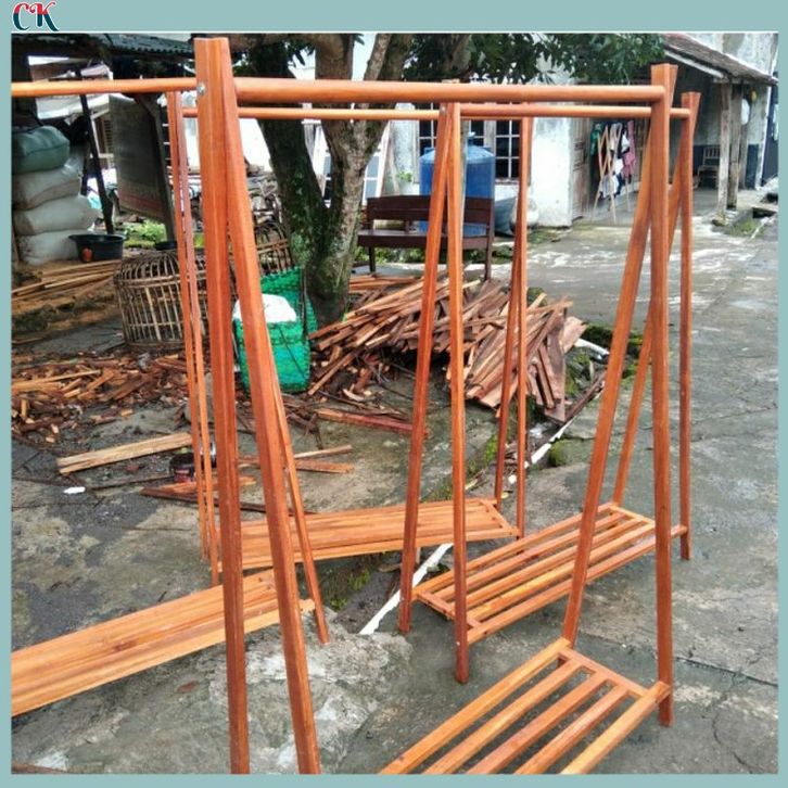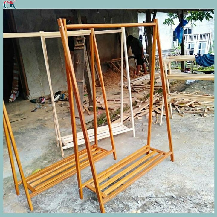 GANTUNGAN BAJU KAYU STAND HANGER RAK KAYU BAHAN ASLI KAYU JATI KUAT KOKOH