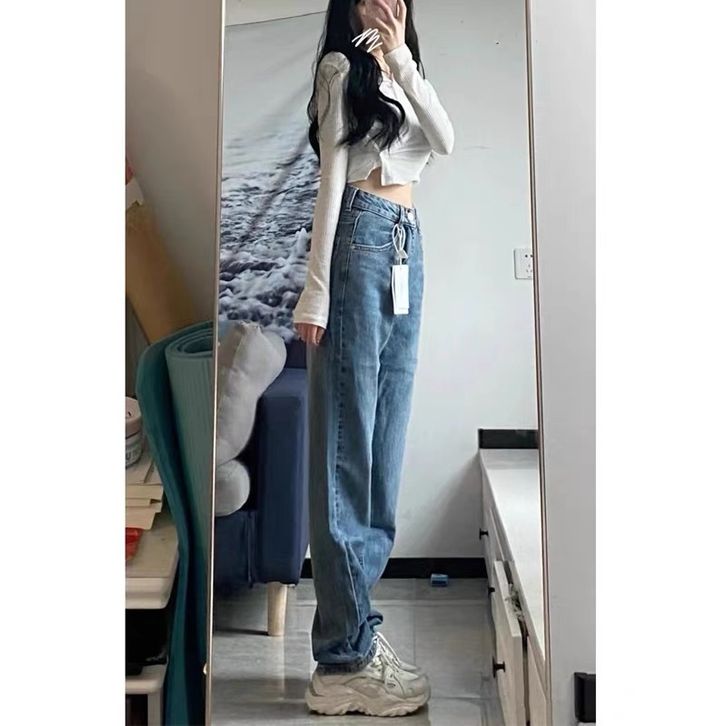 Celana jeans high waist wanita korean style Jeans baggy pants Serbaguna Kasual Biru Retro