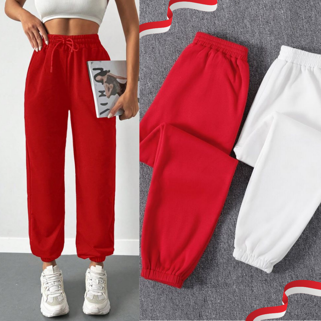 CELANA JOGGER AGUSTUSAN SWEATPANTS OLAHRAGA MERAH PUTIH , CELANA AGUSTUSAN, CELANA JOGGER MERAH PUTIH, CELANA TRENING DE