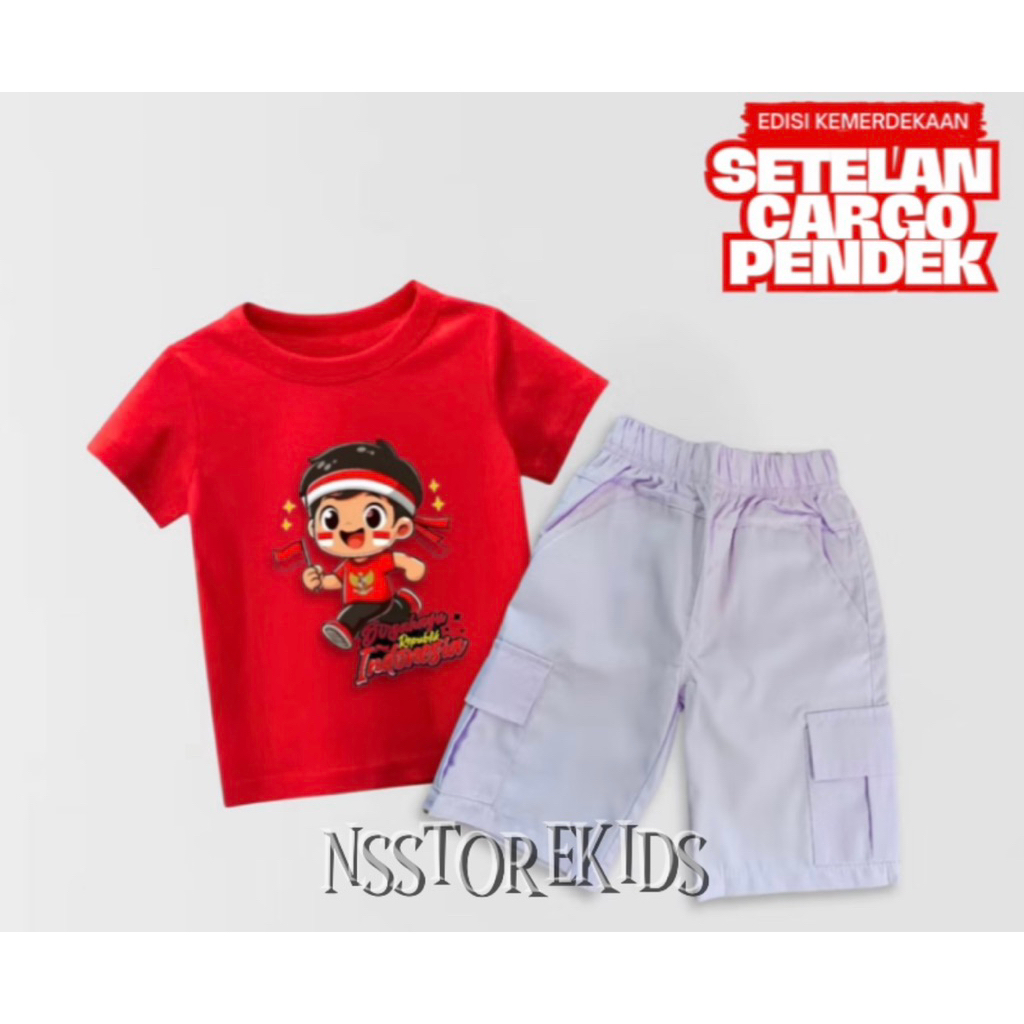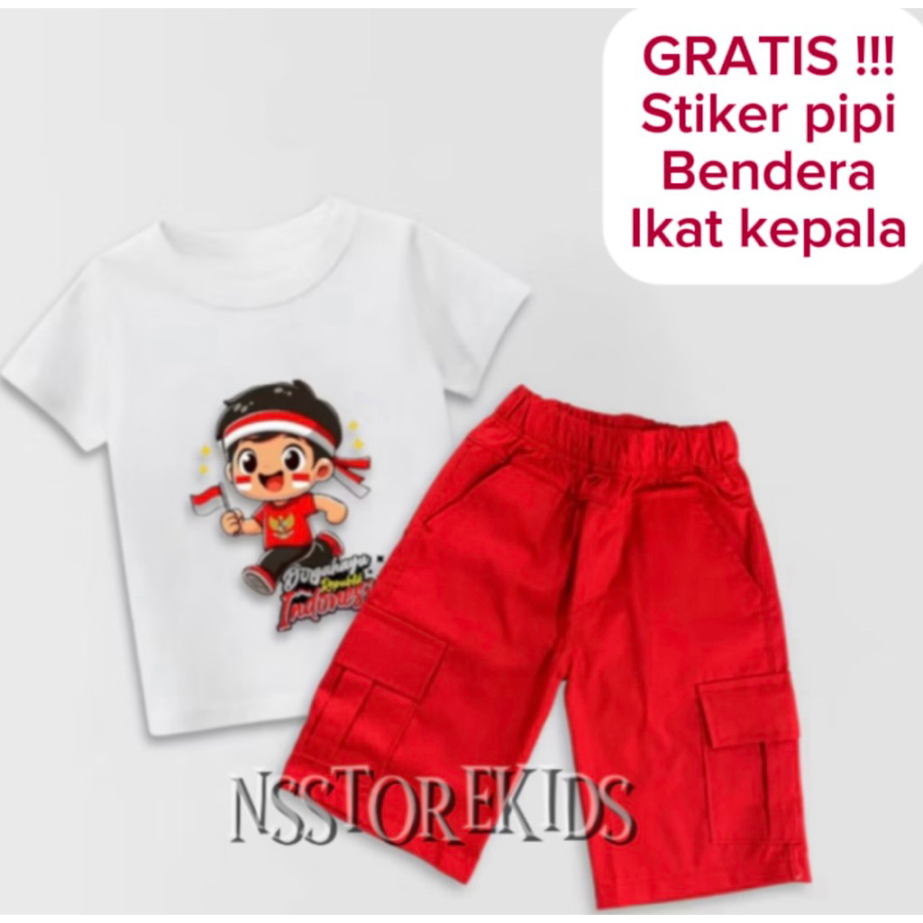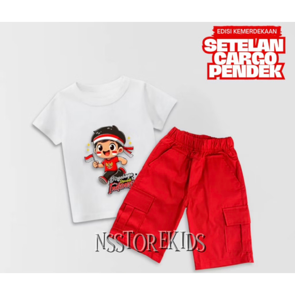 setelan celana cargo pendek merah putih special kemerdekaan 17 agustus