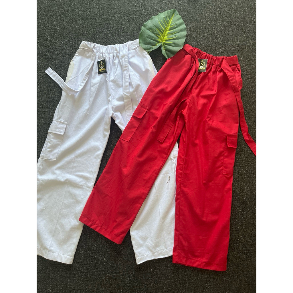 Celana cargo merah putih/ celana merah putih/ celana anak perempuan/ celana anak tanggung/ celana remaja umur 6-12 tahun