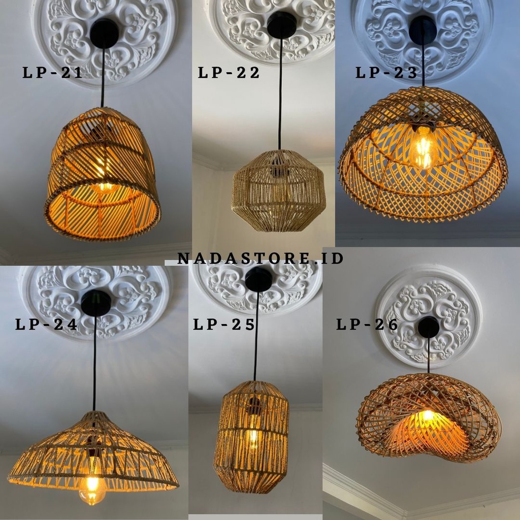 NEW ARRIVAL LAMPSHADE ROTAN SEAGRASS FREE FITTING LAMPU DAN KABEL / LAMPION / RATTAN HANGING LIGHTS