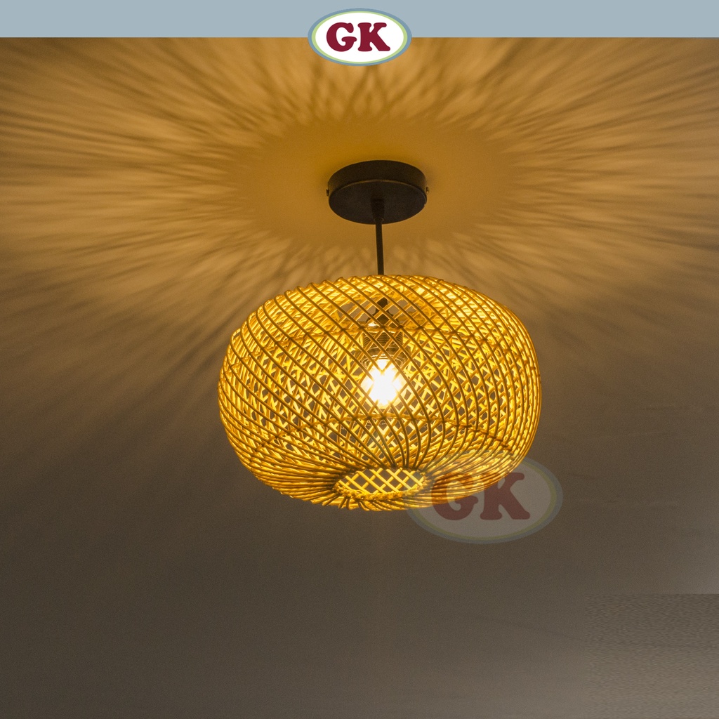 KAP LAMPU GANTUNG ROTAN BASIC 45 D30 - RATTAN UNIQUE INTERIOR LAMP DECORATION FOR COZY CAFE, RESTO OR HOME.