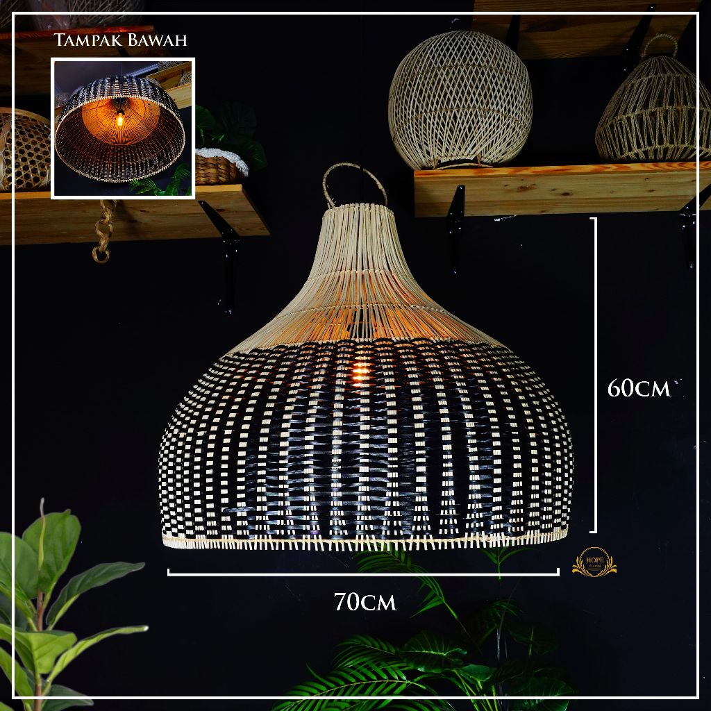KAP LAMPU UKURAN BESAR ROTAN GANTUNG HIASAN RUMAH, CAFE, HOTEL DLL