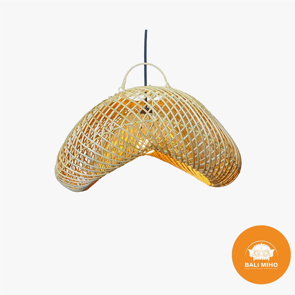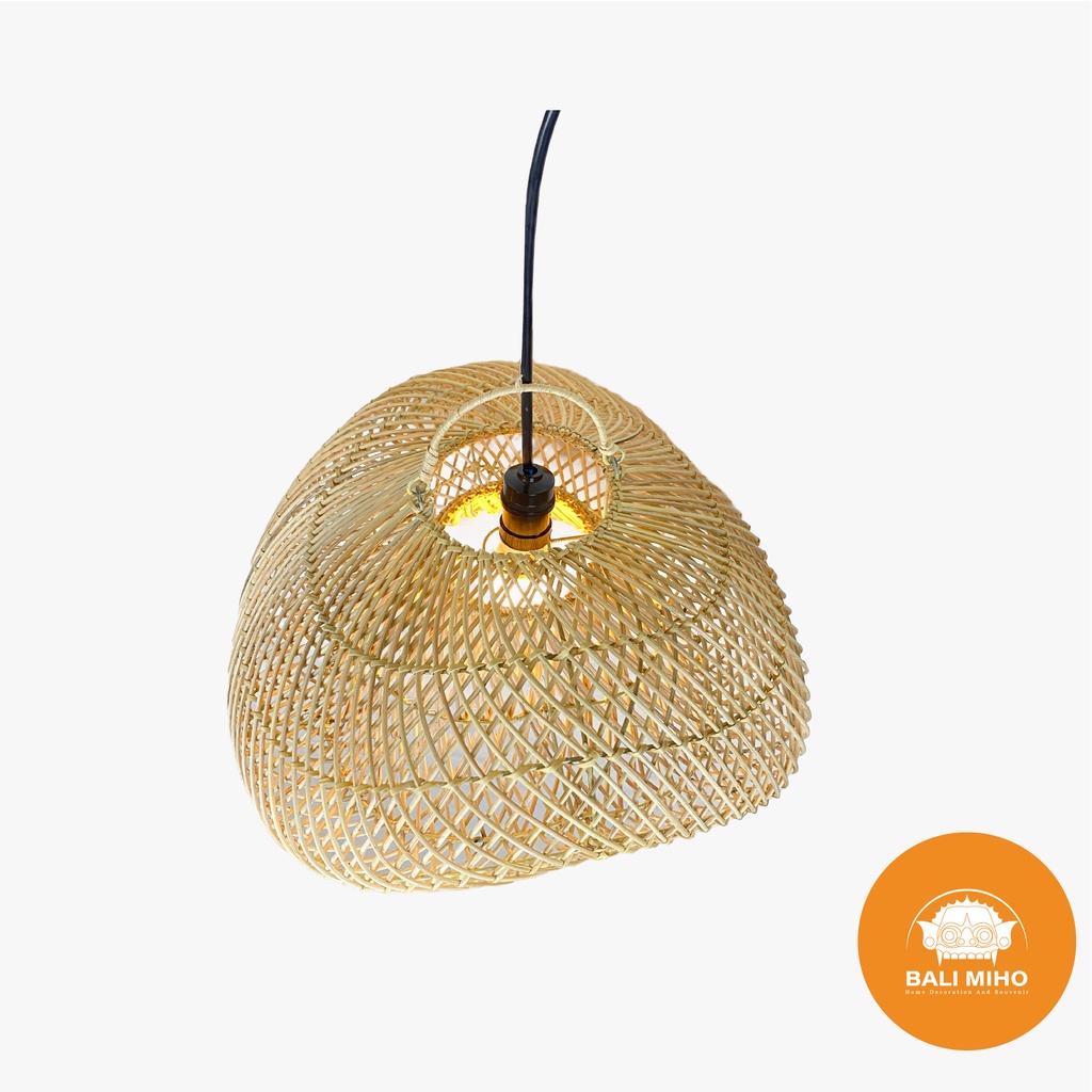 KAP LAMPU ROTAN MODEL OMBAK 40 CM - KAP LAMPU ROTAN - LAMPU CAFE - LAMPU ROTAN - LAMPU KAYU - RATTAN LAMPSHADE