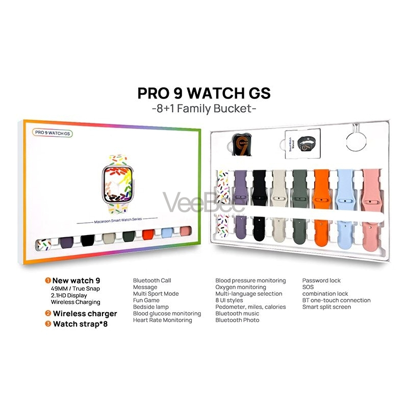 SMARTWATCH PRO 9 GS SERIES 9 IOS ANDROID DAPAT 8 TALI WARNA MACARON