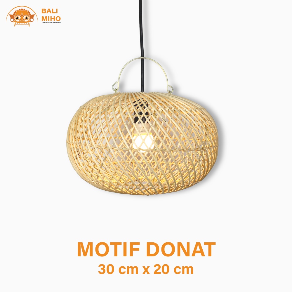 KAP LAMPU ROTAN MODEL DONAT 30 CM/KAP LAMPU UNIK/LAMPU CAFE/LAMPU ROTAN/LAMPU KAYU/LAMPU BAMBU