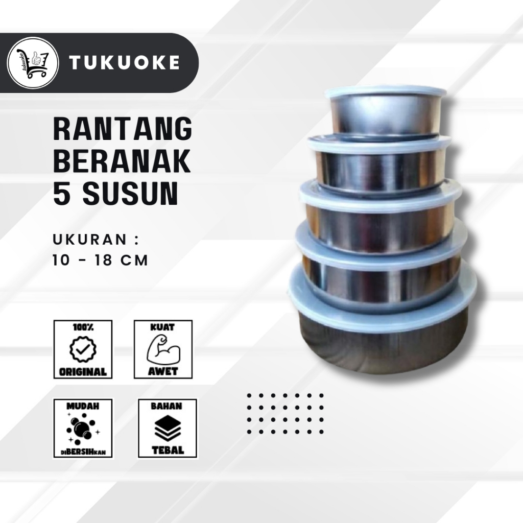 RANTANG BERANAK STAINLEES STEEL 5 SUSUN+TUTUP / RANTANG BERANAK SET ISI 5PCS WADAH SAJI MANGKOK SAJI