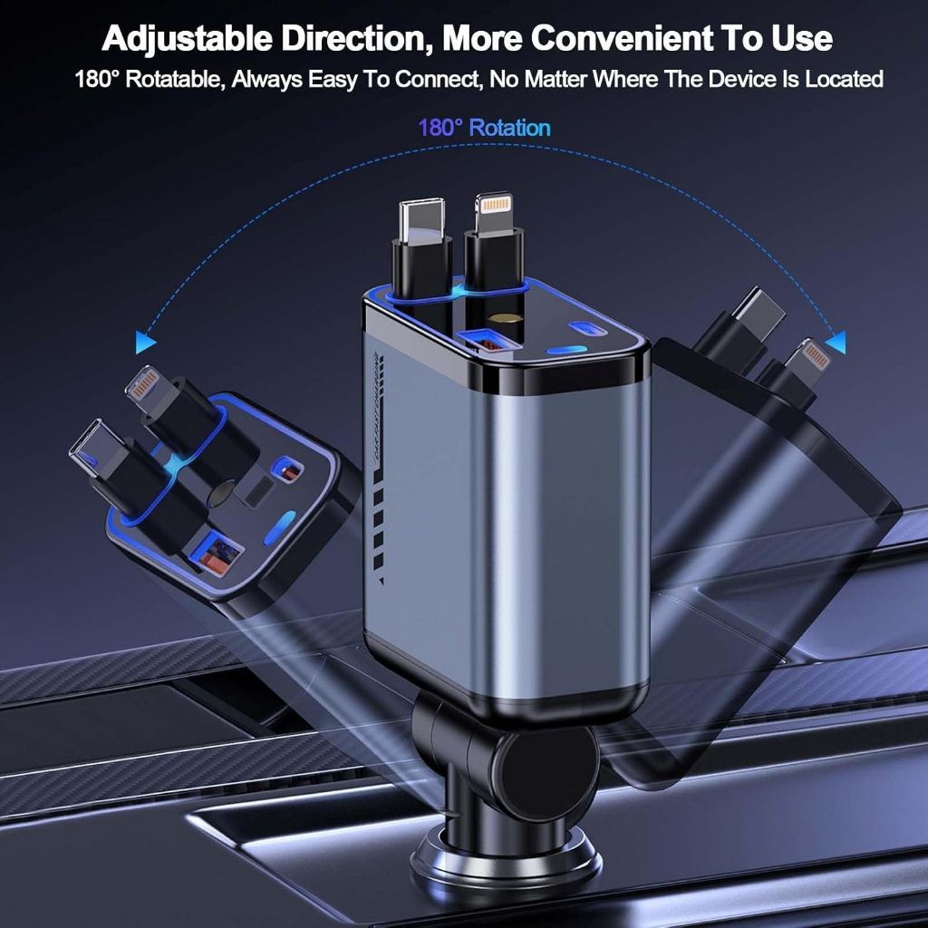 Fast Car Charger with Starry Light 120W Fast Charging Car Charger Mobil & Motor Rectractable Cable 4 In 1 Type-C Dan Iphone USB Type C & Lightning Fast Charging Qualcomm 3.0