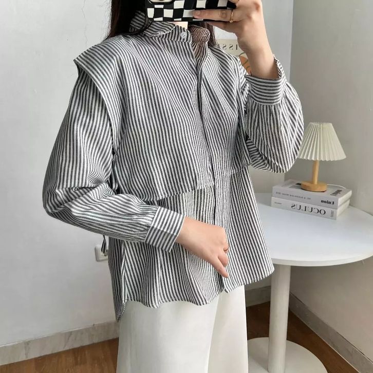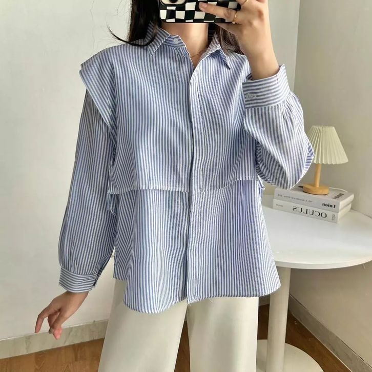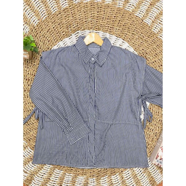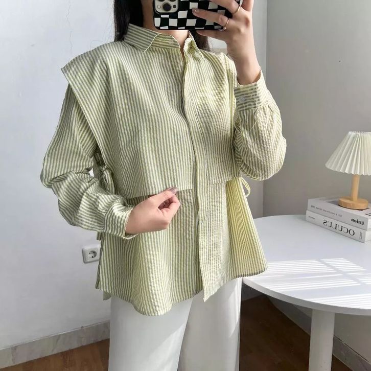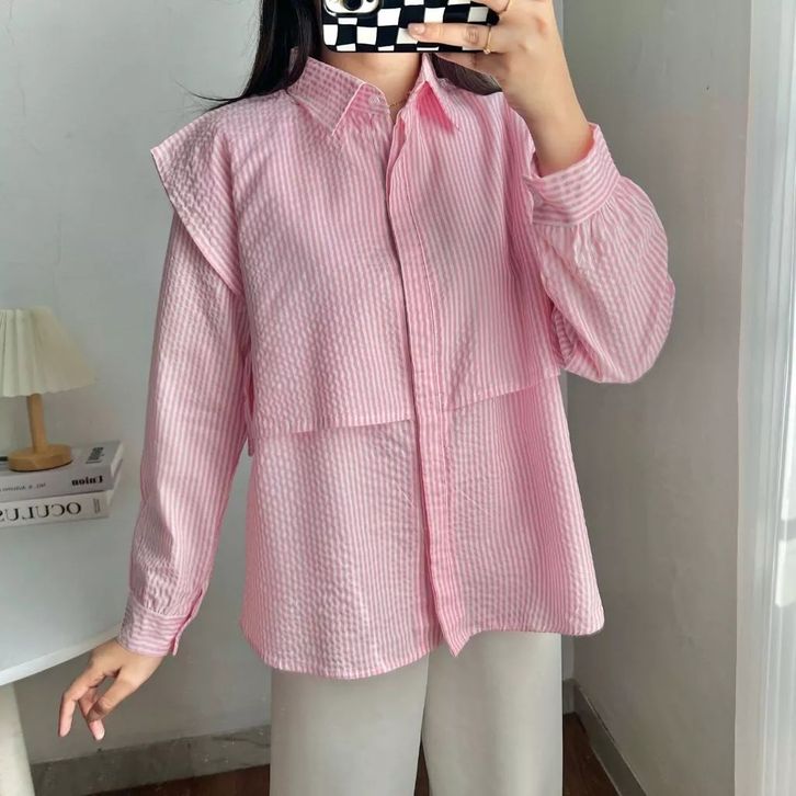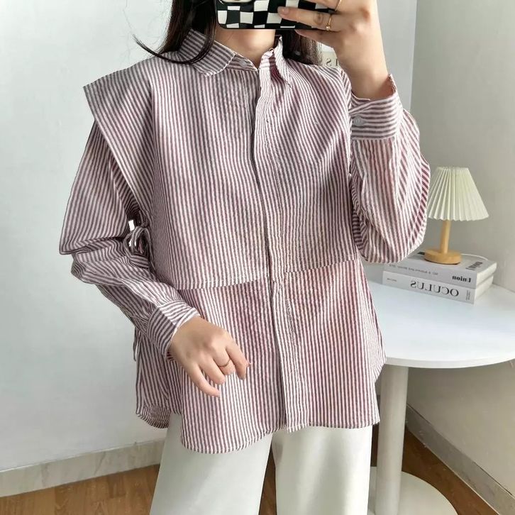 Kemeja Wanita Oversize Atasan Kemeja Salur