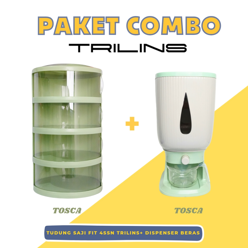 PAKET COMBO FIT Hampers Tudung Saji FIT 4 Susun + Dispenser Beras Tempat Penyimpanan Beras 10kg