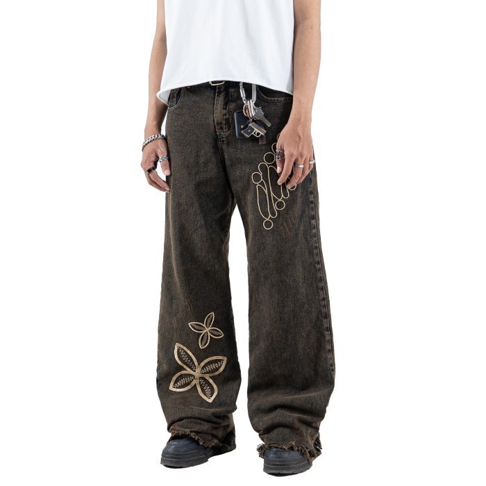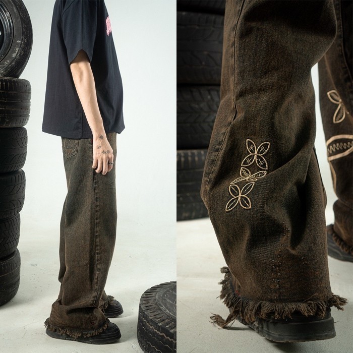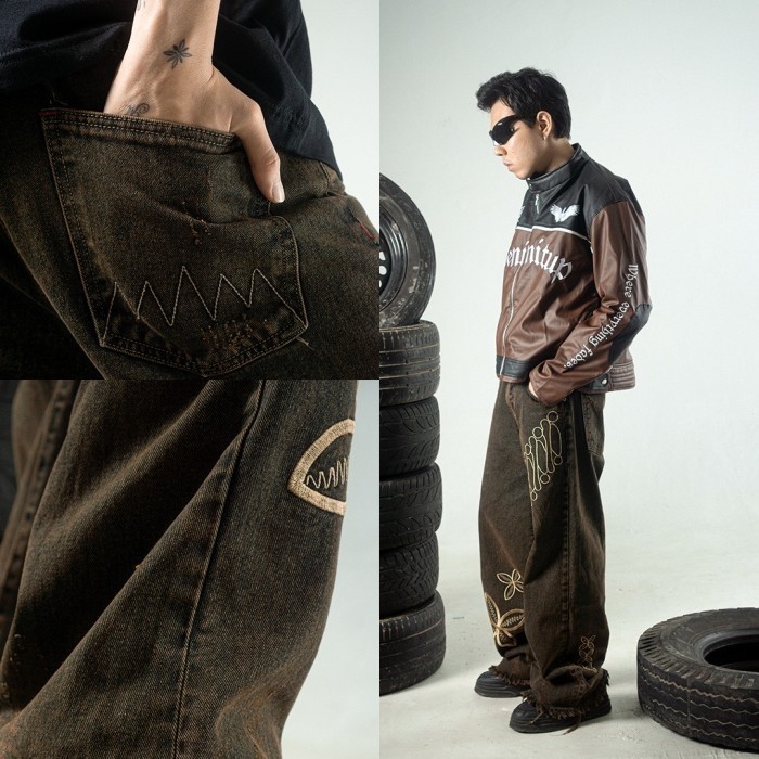 H1 Baggy Batik Embroidered - Snowish Cognac Brown - Celana Jeans