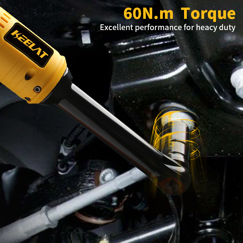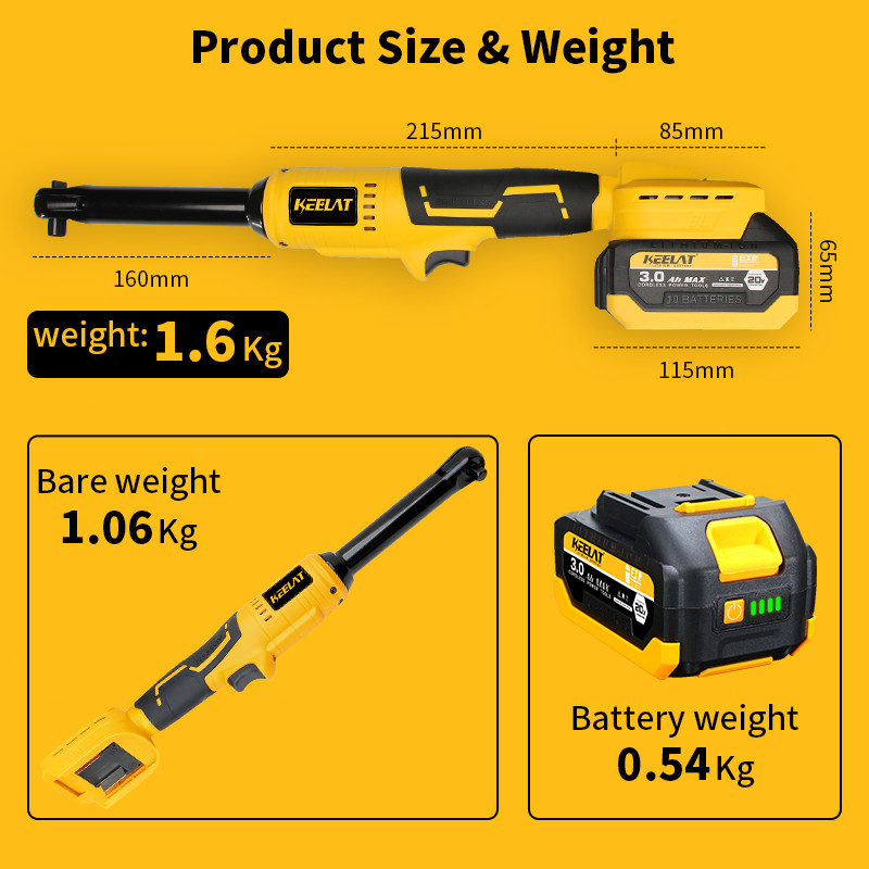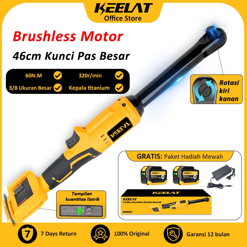 【KEELAT-KRW003】 Motor Brushless 60N.M 3/8 Inci Kunci Rachet Nirkabel Kepala Panjang 16CM Kunci Listrik Alat Bertenaga