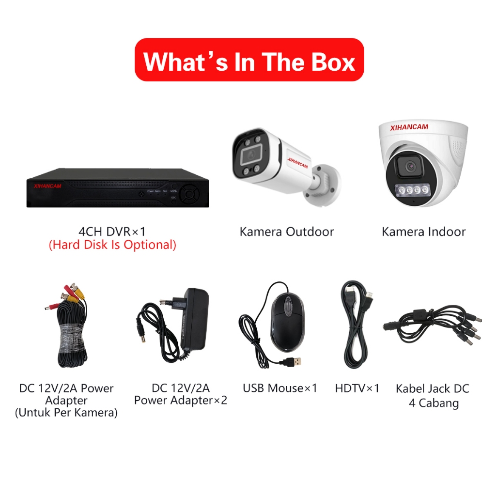 Paket CCTV 4 Kamera 2MP Kit Kamera CCTV Analog 4CH Komplit Siap Pasang
