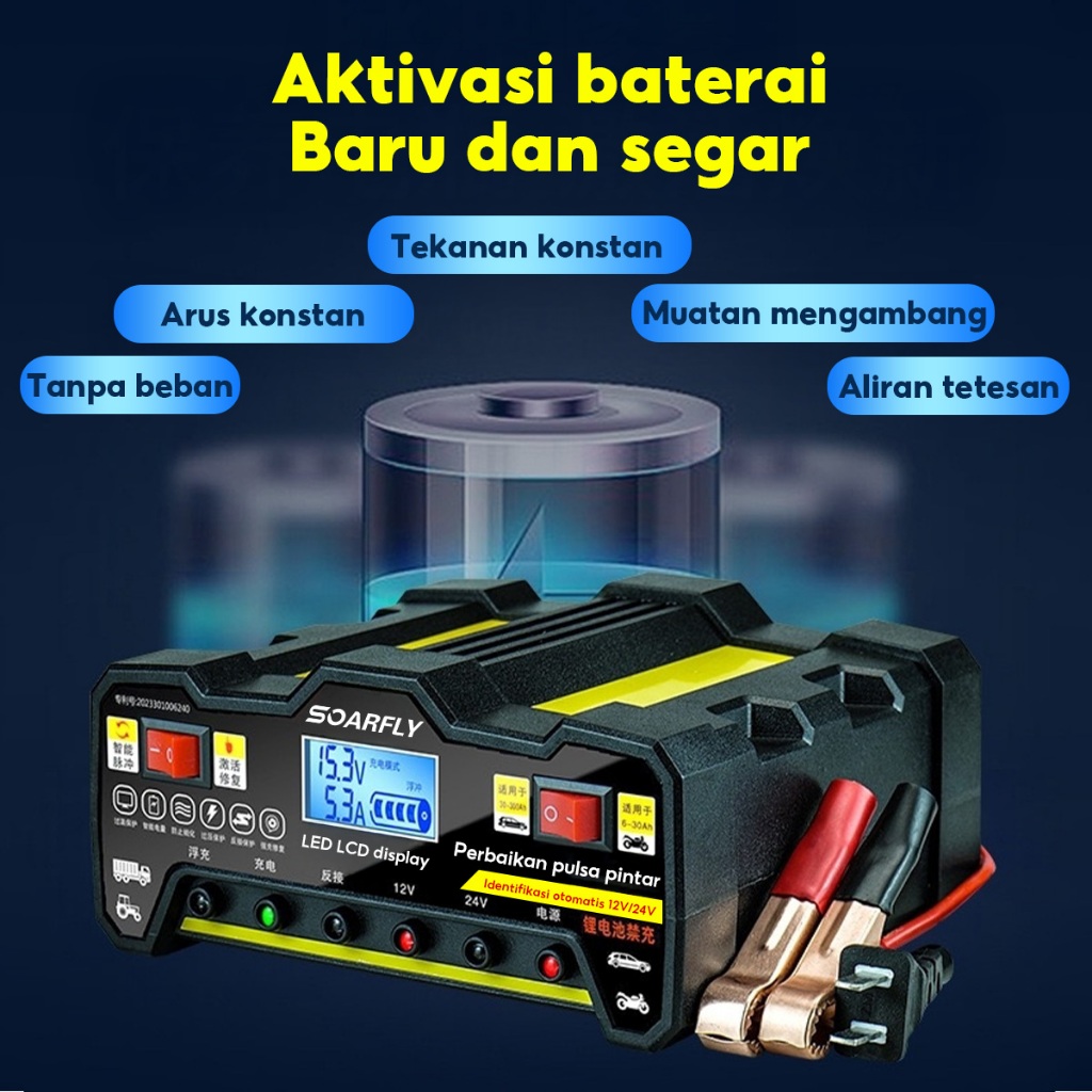 SOARFLY Car Charger Otomatis Aki Mobil Motor Kapal Truk Automatic Fast Smart Charger 12V/24V 220W