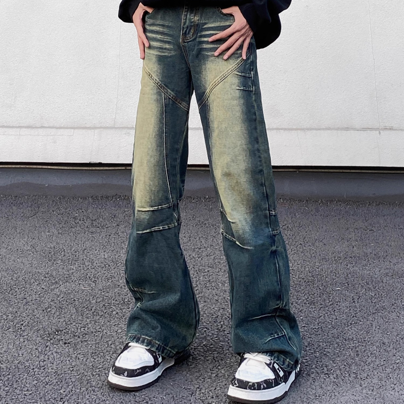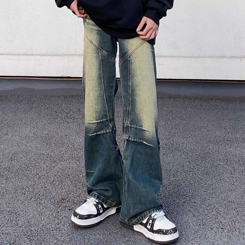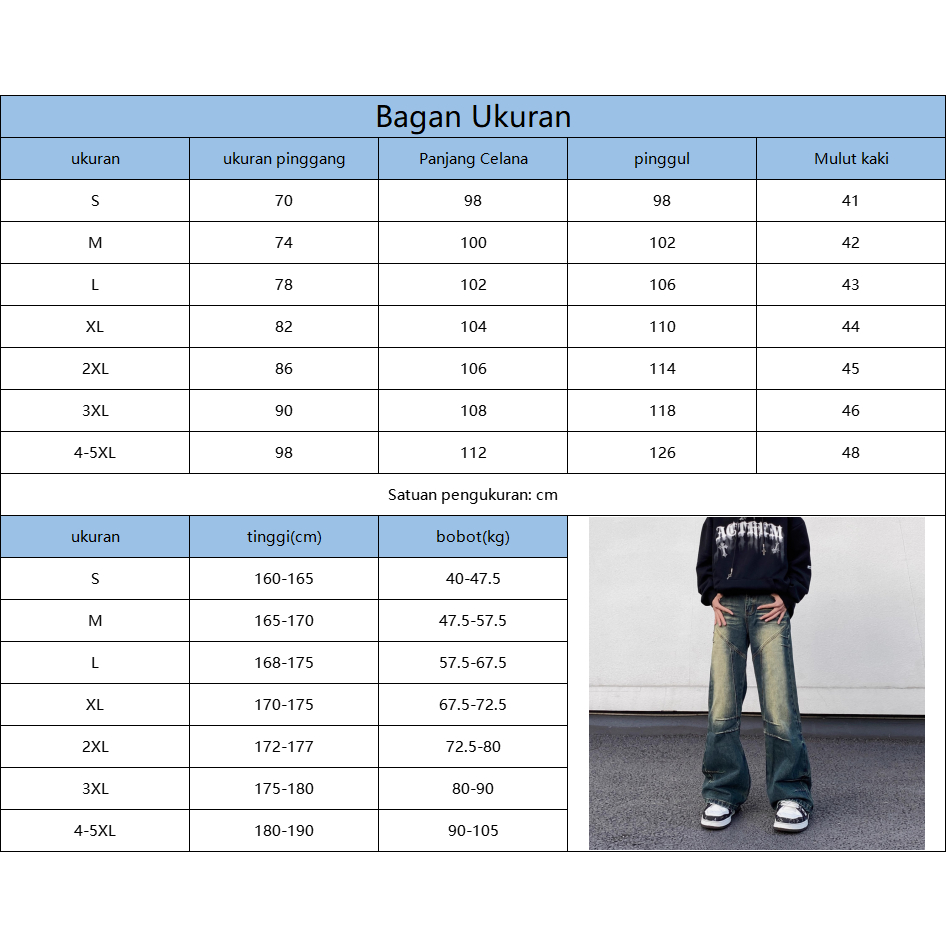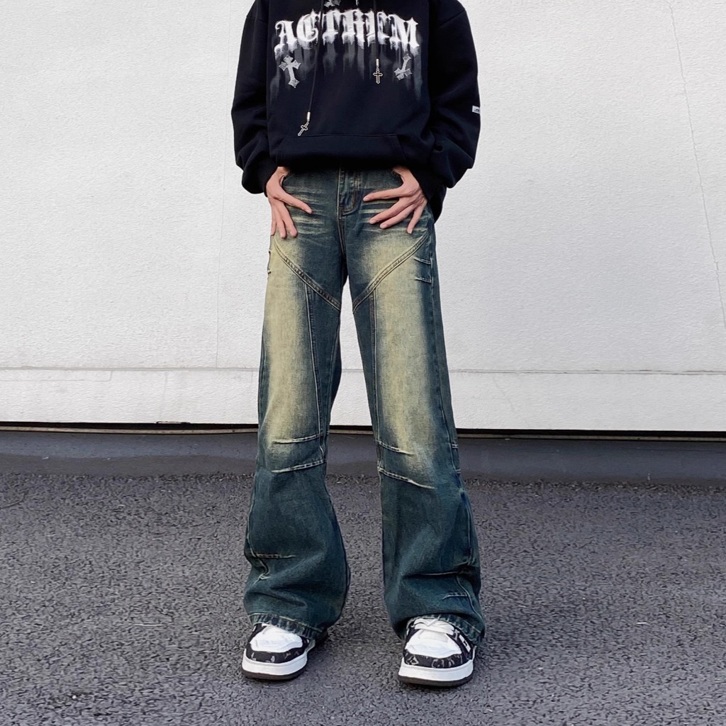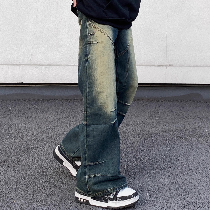 celana jeans pria baggy skena denim Struktur lipatan kumis kucing jumbo cowok loose jeans korean style oversize straight casual blue jeans vintage