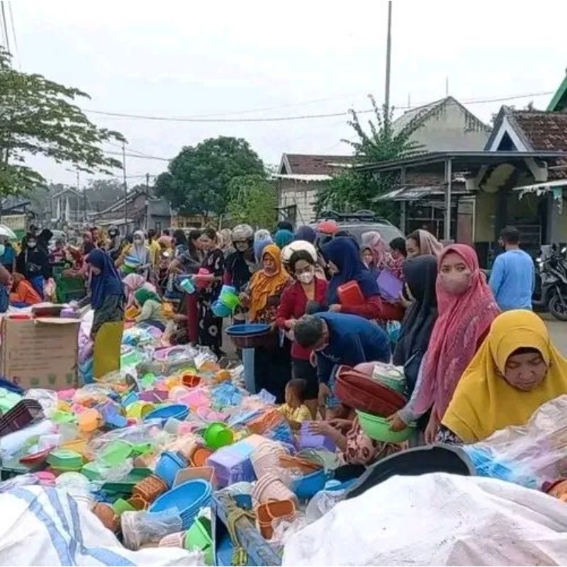 gelas jumbo, sikat pakaian, nampan bulat, mangkok garis, cetakan nasi, celengan, sutil, pisau buah, pisau panjang, mangkok karakter