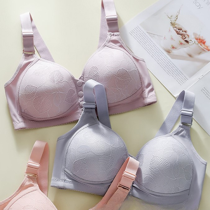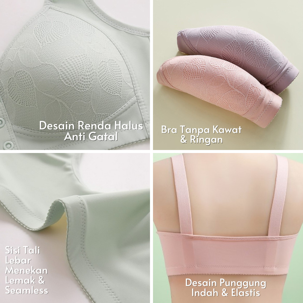 Brasay Bra Push Up Gesper Depan Anti Kendur Wanita BH Renda Motif Bunga Bra Seamless 9092