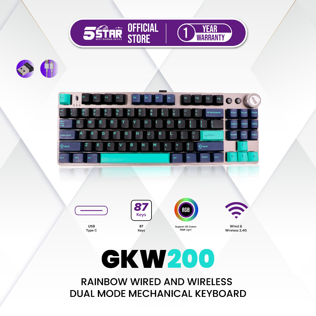 5Star Gaming - GKW200 Keyboard Mechanical Gaming Wireless 2.4G RGB Backlight
