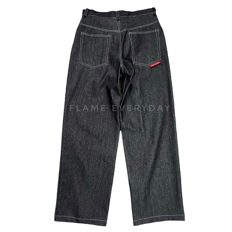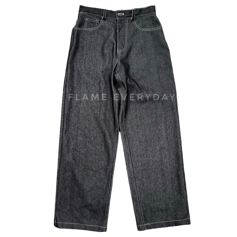 Flame Everyday Celana Denim Y2K Baggy Wideleg Gombrong Raw Denim 13oz Hitam