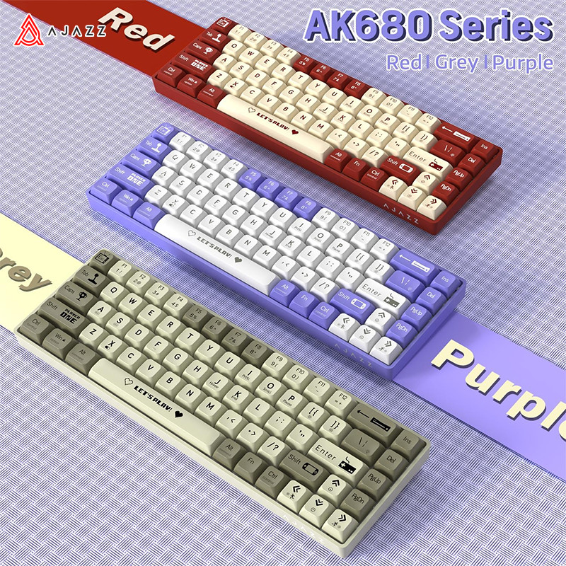 AJAZZ AK680 65 PERSEN Gaming Mechanical Keyboard Wired Wireless Bluetooth Gamer Keyboard Hot Swap Custom Keycap for Pc