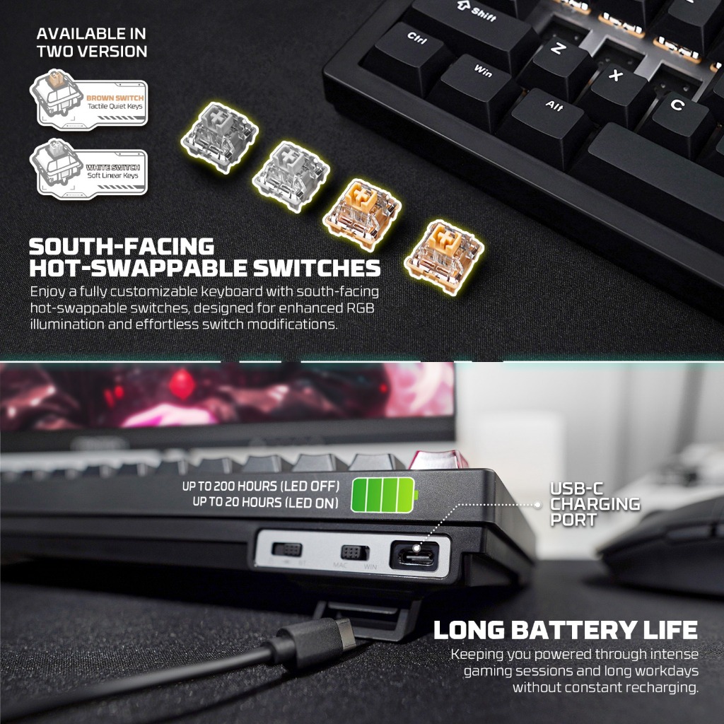 Fantech MAXFIT6 QMK VIA Compatibility Keyboard Wireless Gaming Mechanical 60 PERSEN Layout Silicon Gasket Wired Bluetoot