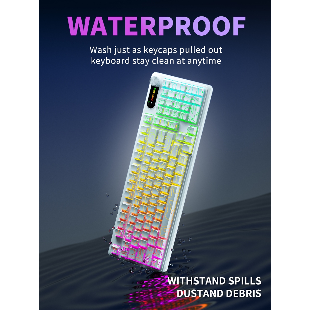 FURYCUBE IP98 PR0 Membrane Keyboard Triple Mode RGB Backlit Knob Control Wireless Gaming Keyboard