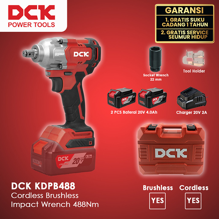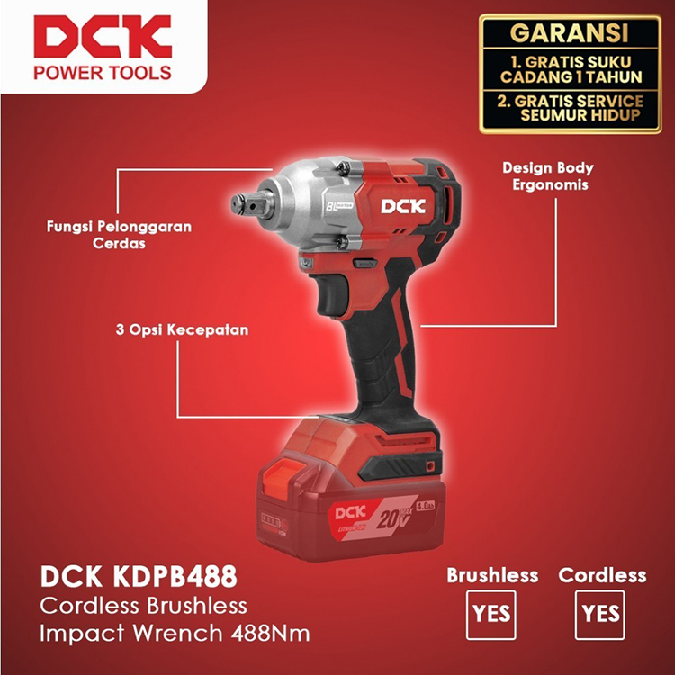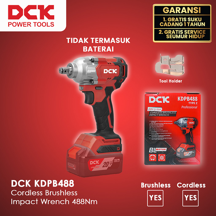 DCK KDPB488 Cordless Brushless Impact Wrench 488Nm/Bor Impact Pembuka Baut Truck Mobil Motor/Bor Baterai/Bor Tanpa Kabel