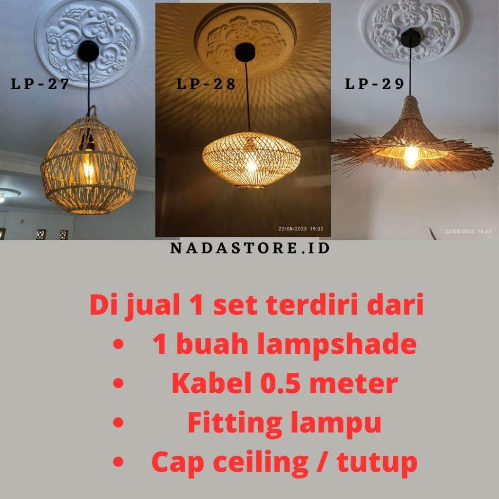 LAMPION LAMPSHADE ROTAN SEAGRASS FREE FITTING LAMPU DAN KABEL / LAMPION / RATTAN HANGING LIGHTS