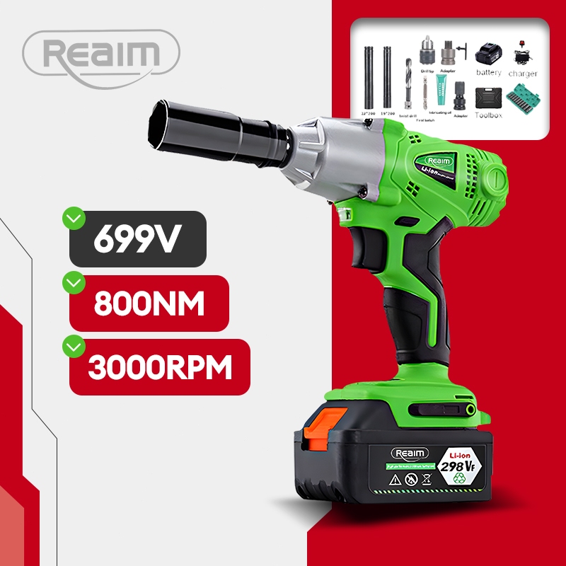 Reaim Impact Wrench Cordless Bor Impact Baterai Cordless Electric Wrench Rechargeable Electric Impact Wrench Spanner Set